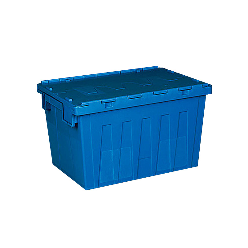 1. 物流箱为可插式、带连体外翻箱盖;把手搬运舒适,空箱套入时,把手在外。